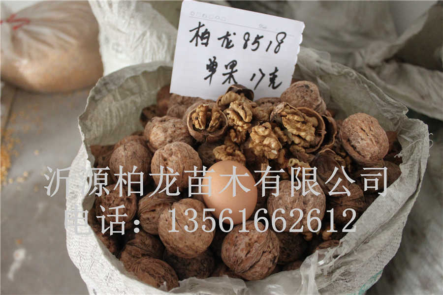 沂源柏龍苗木有限公司(柏龍苗木基地),建在魯山山麓8518核桃選育地,是沂源資質深,規模大,經驗足的專業實體苗木公司。早在70時代就為林業局定點苗木基地。2006年選育8518核桃苗。公司做事以誠信為宗旨,創新為目標,已逐步打造出柏龍系列的品牌苗,先后選育了750萬株8518核桃苗,遠銷21個省市。2012年隨市場需求,增育了文玩核桃苗(麻核桃),同時在縣政府指導下進行培育了“沂源紅”蘋果苗�!耙试醇t”蘋果苗一經問世,因其是短枝型,易管理,結果早,產量高,果色艷麗,條紅,口感爽脆,是名副其實的優質品種。